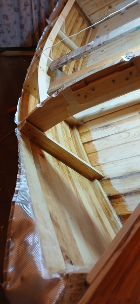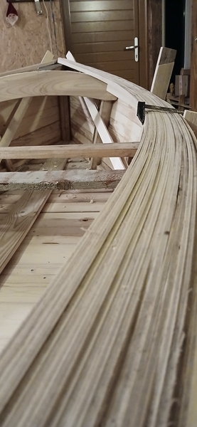 And though I liked the outcome, I understood that more support from the sides is need. Fixing the strips only on the kinglpank, deck arc beam, and transom will not be enough most probably.
