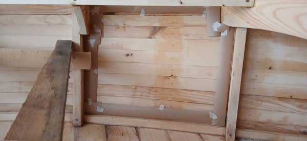 And all good ideas come a bit too late - the hull insides, waking up the next morning I decided I wanted to fiberglass those too. This would give more rigidity to the whole structure, and maybe make maintenance a bit easier. The only problem being that they’re all N shaped and I did not want to waste too much fibercloth, because I still wanted to apply it to the hull inside bottom too. The solution was to template every panel piece by piece. Since starboard and port sides should be the same then only 5 patterns would be needed… but… just in case check that. Fortunately, all was correct.